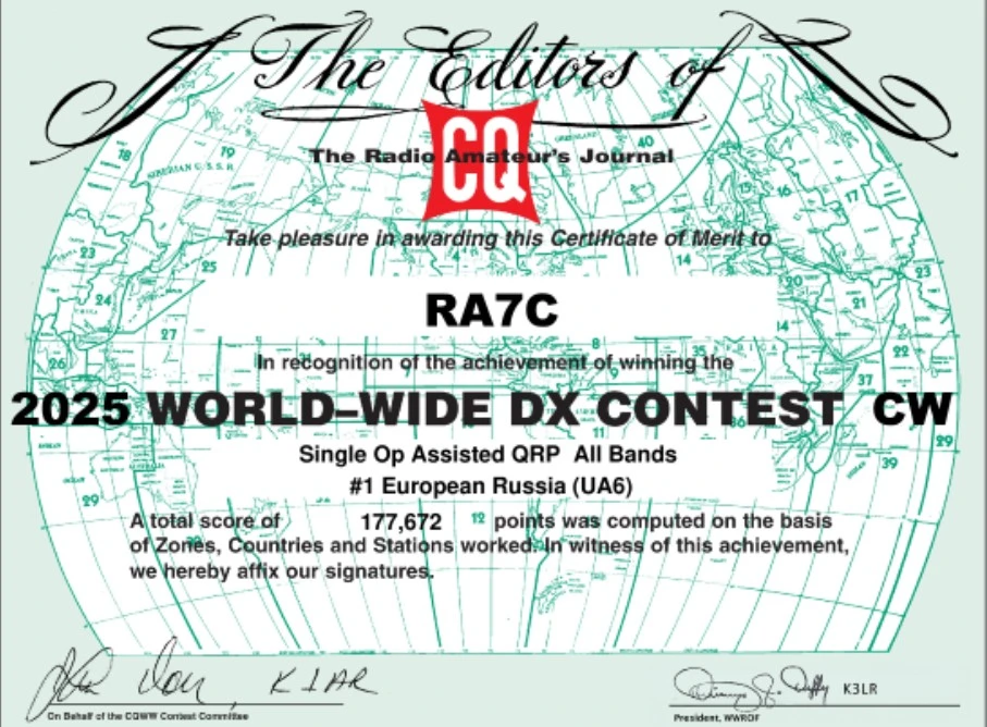 Дипломы за соревнования КВ-УКВ 2025.