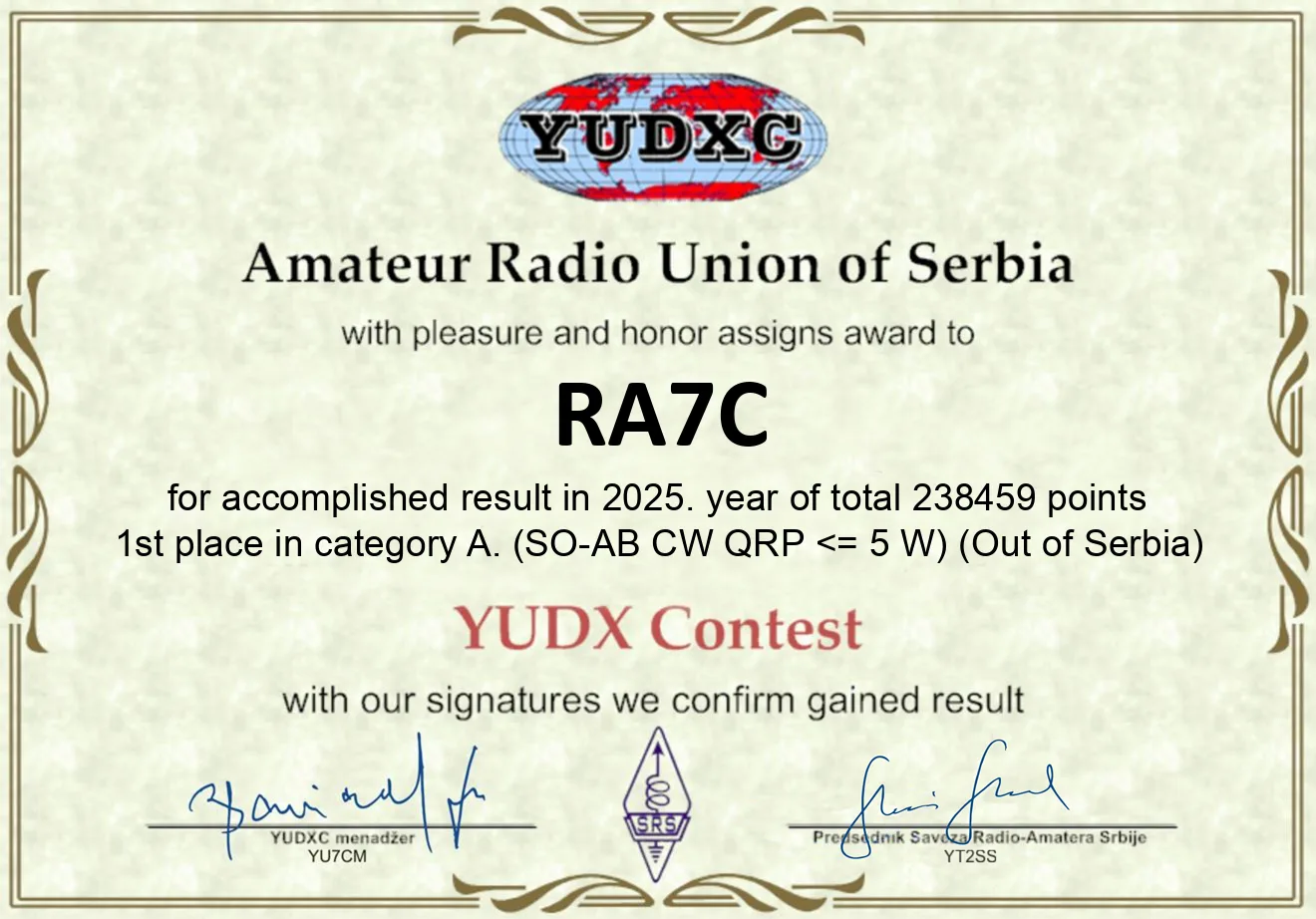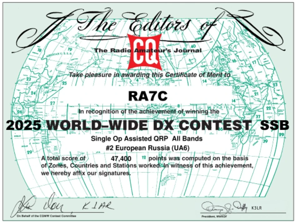Дипломы за КВ-УКВ соревнования: