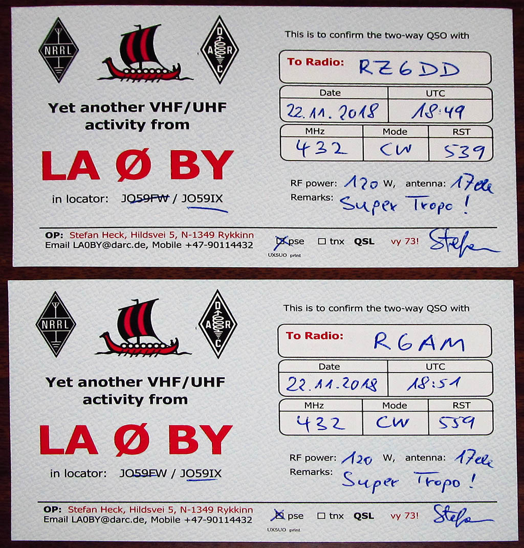 RZ6DD - LA0BY (JO59ix) - 2604 км - новый рекорд дальности России на этом диапазоне. Но - всего на несколько минут. Подошел R6AM и новый рекорд России на 432 мгц - 2609 км у Геннадия.