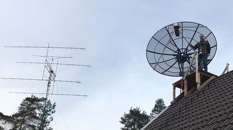 Время от времени думал про диапазон 1296 мгц. Но у меня антенна 1,8 метра парабола была привязана из-за ветров. Наконец, преодолев лень и нежелание терять время прохождения на 432 мгц, полез на крышу, снял параболу с якоря, поднял лебедкой на 1,5 метра в рабочее положение.